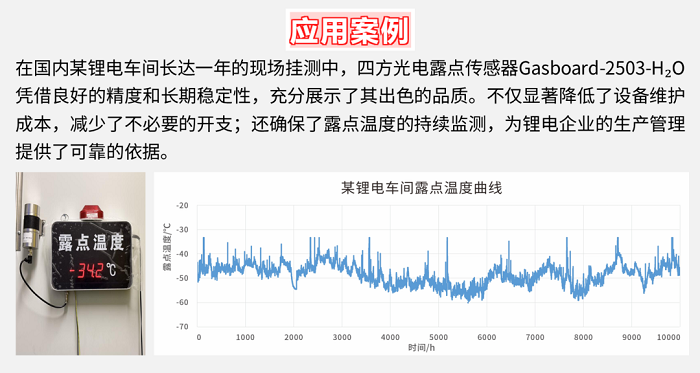 在锂电池车间中,露点传感器需同时满足精度高和强抗干扰的核心要求:不仅要在-70℃~-30℃的露点下保证测量准确,还要有效抵抗VOC、HF等干扰气体的影响。